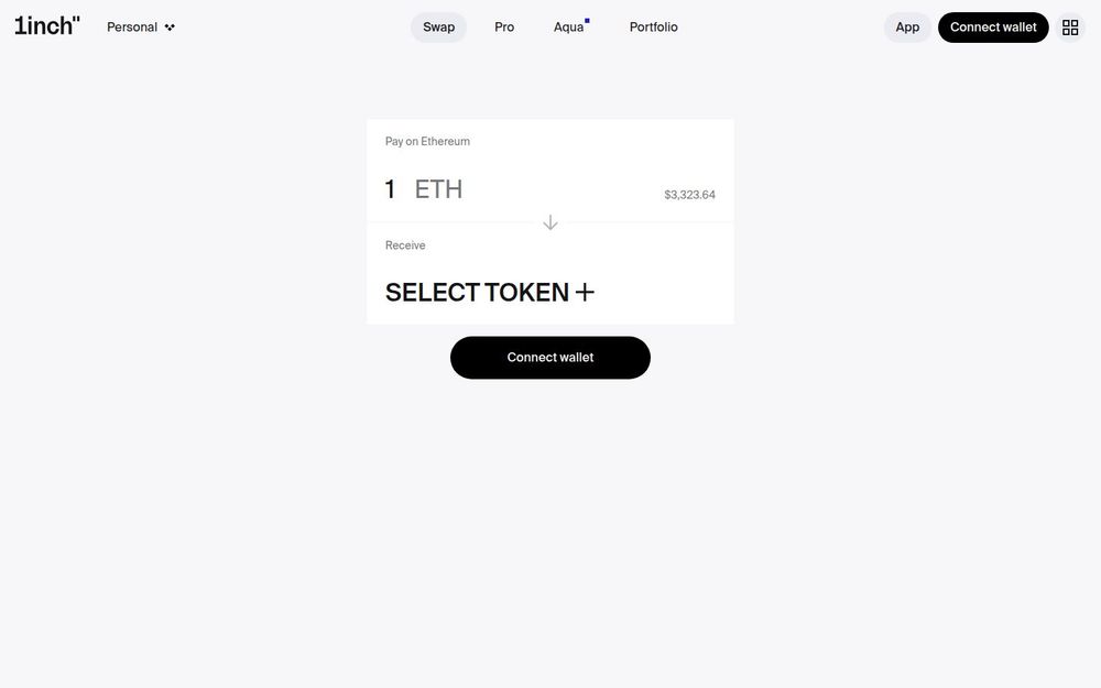 1inch is a decentralized finance platform focused on improving on‑chain token swaps and asset management by aggregating liquidity and simplifying cross‑chain interactions. The site exposes multiple product lines — including Swap, Wallet, Portfolio, Card, Pro, and Aqua — and offers both consumer and business-facing features. Users connect their crypto wallets to interact directly with decentralized exchanges and other liquidity sources to execute swaps, monitor holdings, and use value-added services.