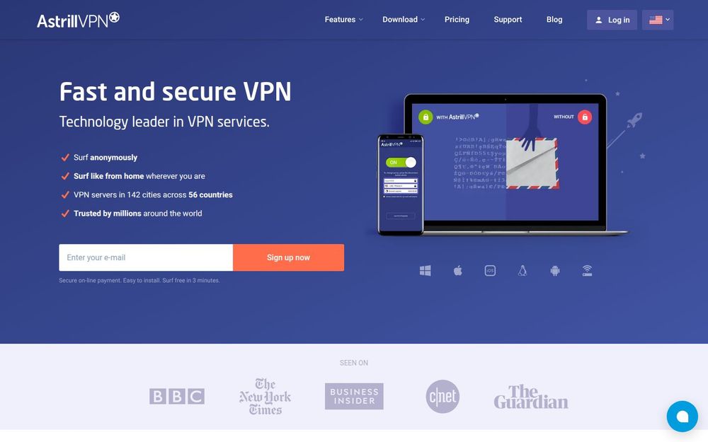 Astrill is a commercial Virtual Private Network provider that promotes itself as a technology leader in privacy and performance. It targets both individual users and organizations seeking to secure their internet traffic, bypass geographic restrictions, and preserve anonymity online. Astrill highlights a large infrastructure of dedicated high-performance servers worldwide, a suite of client apps across major operating systems, and several proprietary and standard tunneling protocols designed to optimize speed and stealth.