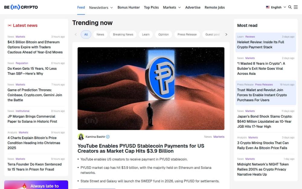 BeInCrypto’s combination of editorial reporting, practical resources, and market tools makes it a comprehensive hub for anyone tracking the crypto space, from casual readers to market professionals.