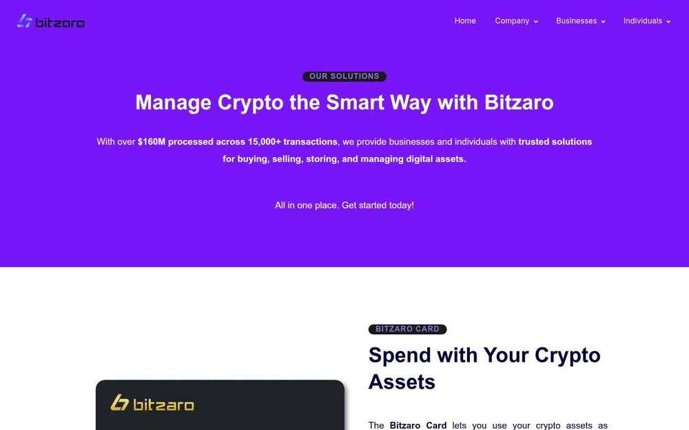 Bitzaro Card: A USD-denominated card that lets eligible businesses use crypto assets as collateral to make purchases at millions of merchants. The card holds crypto securely while enabling fiat spending.
