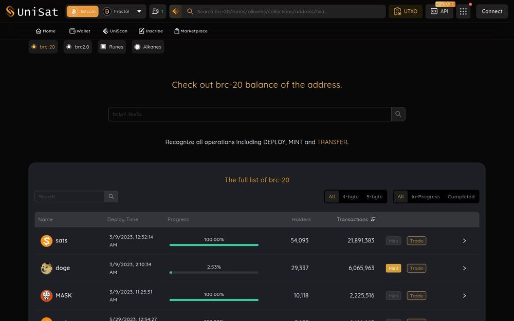 - Use the BRC-20 explorer to look up addresses, view balances, and inspect historical DEPLOY/MINT/TRANSFER events.