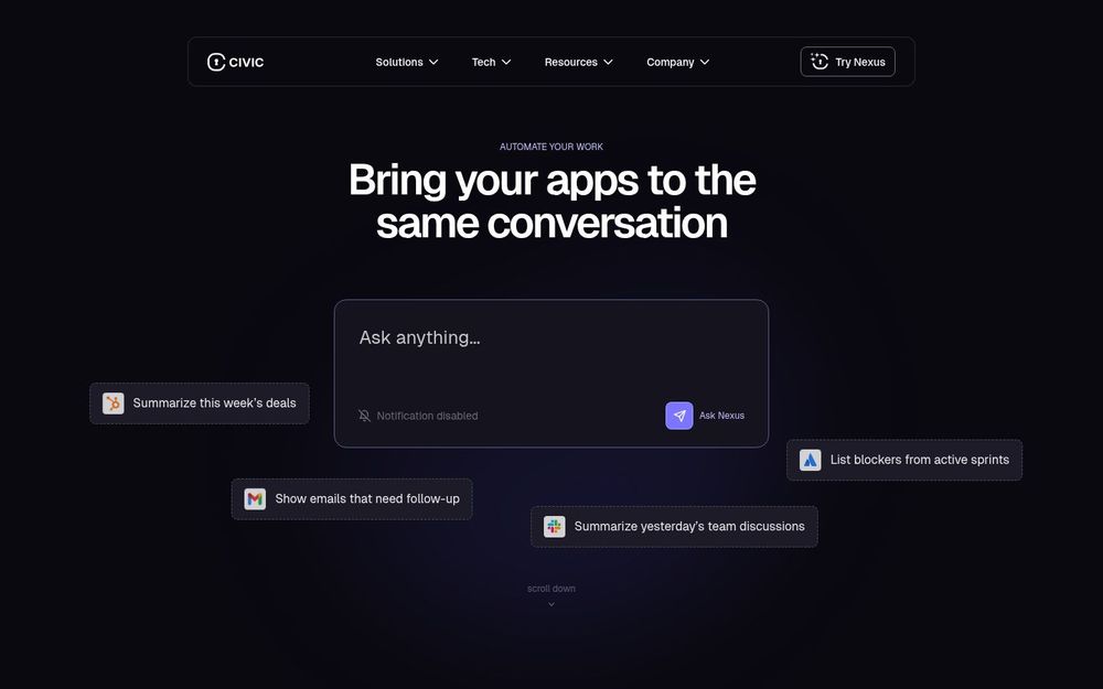 Civic Nexus positions itself as a workflow automation layer that speaks your team’s language. By making integrations conversational and templates readily available, it helps organizations convert dispersed signals into coordinated actions while reducing repetitive manual work. For teams aiming to streamline routine workflows and improve cross-functional alignment, Civic Nexus offers a practical way to automate and centralize operational tasks.