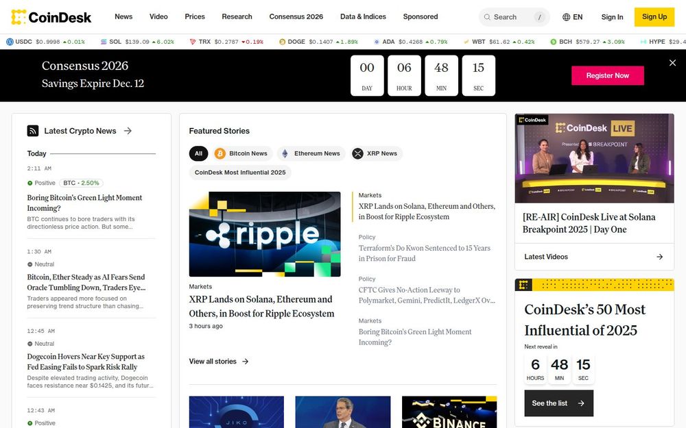 Events and Conferences: CoinDesk organizes high-profile industry events—most notably Consensus—which bring together executives, investors, developers, and regulators. Event coverage and re-airs provide another channel for content, networking, and thought leadership.