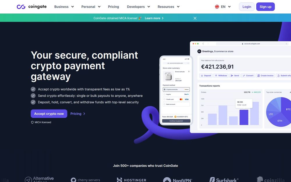 Regulatory clarity: With MiCA licensing and compliance tools, CoinGate reduces regulatory uncertainty for EU-focused businesses.