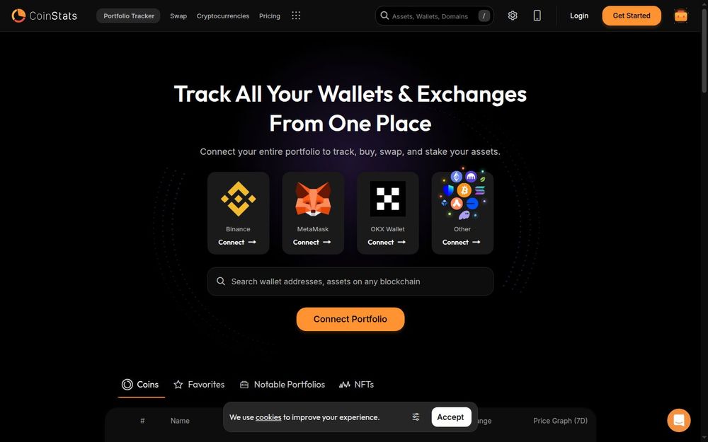 CoinStats is an all-in-one crypto portfolio tracker that centralizes asset management across wallets, exchanges, DeFi protocols, and NFTs. Built to serve both casual investors and active traders, CoinStats aggregates balances and transactions from a wide range of sources so users can view their entire crypto footprint in one place. The platform emphasizes cross-platform connectivity, depth of market coverage, and actionable analytics — including profit & loss reporting and AI-assisted price insights.