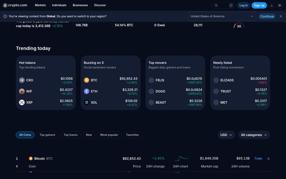 Actionable Links and Integration: Each coin entry includes quick Trade links and often has dedicated asset pages with charts and deeper data, which integrate with Crypto.com’s trading and ecosystem features like Earn and institutional liquidity products.