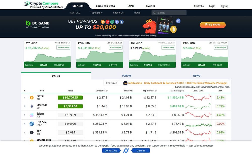 Community & Support: Active forums provide crowd-sourced insights, while the site’s support and migration notes (for example, login/authentication migration details) and third-party data attributions (e.g., CoinDesk) are visible on the platform.