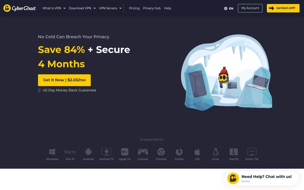 Apps are available for major desktop and mobile platforms, plus browser extensions for Chrome and Firefox and setup guides for routers and Smart TVs. The service includes 24/7 live chat and email support, a 45‑day money‑back guarantee on most long‑term plans, and short free trials for specific platforms, giving users time to evaluate performance and compatibility.