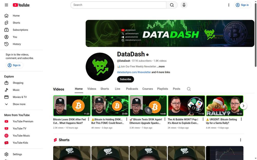 DataDash is a YouTube channel and financial media brand that offers regular commentary and analysis on cryptocurrencies, macro markets, and trading strategies. The channel blends market news, technical commentary, and educational content to help viewers understand price action, market structure, and portfolio construction. DataDash publishes a mix of full-length market updates, targeted tutorials, and short-form content (YouTube Shorts), and maintains playlists focused on trading tips and strategy. The brand also runs a premium offering called the Traders' Club (datadashpro.com) for traders who want deeper instruction and exclusive resources.