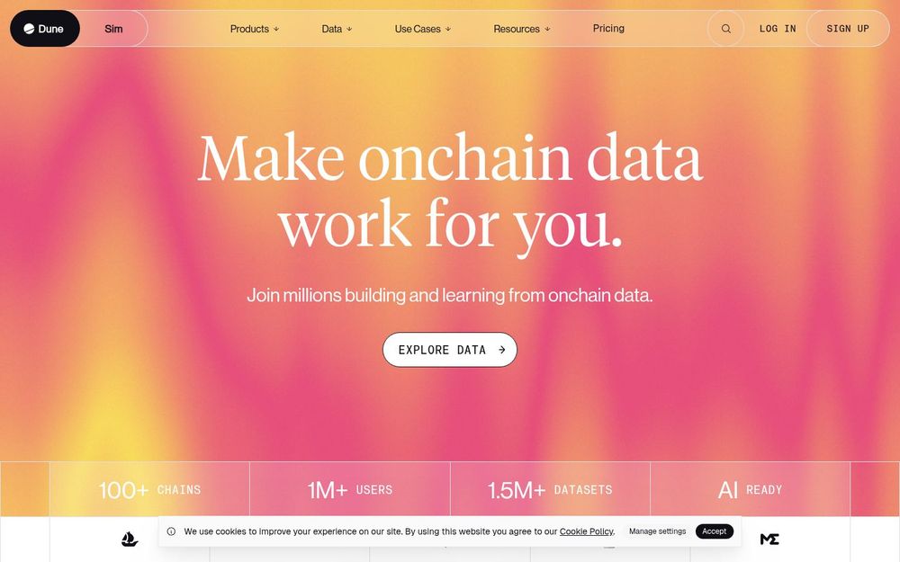 Dune is a purpose-built platform for exploring, analyzing, and operationalizing on-chain blockchain data. It combines a large public catalog of datasets and user-created queries with tools for visualization, API access, and data delivery. Whether you are an on-chain analyst, a developer building products across chains, or an AI system needing structured on-chain inputs, Dune is designed to lower the friction of working with blockchain telemetry and to accelerate insight-driven decisions.