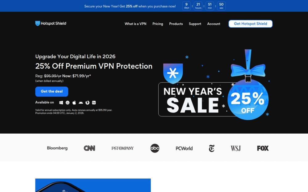 Hotspot Shield is a strong choice when speed and cross-platform convenience are primary concerns. The Hydra protocol and large server network make it suitable for streaming, gaming, and P2P traffic, while multi-device support and a trial period lower the barrier to testing the service. Promotional pricing on annual plans can make it cost-effective for long-term protection.
