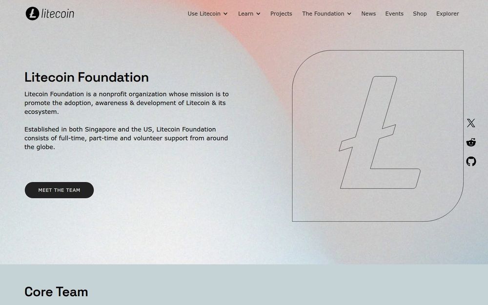 The Litecoin Foundation is a nonprofit organization whose mission is to promote the adoption, awareness, and development of Litecoin and its ecosystem. Established with presences in both Singapore and the United States, the Foundation functions as a central steward for community-facing activities, technical coordination, and strategic partnerships. It operates with a core team of directors, managers, and developers, supported by numerous contributors, volunteers, and advisors who help with communications, legal guidance, fundraising, and technical development.