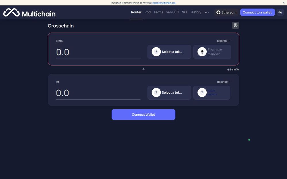 Multichain (formerly Anyswap) is a cross-chain router protocol and bridging application designed to move tokens and assets across diverse blockchain networks. The platform exposes a user-facing web app at app.multichain.org that lets users connect wallets, select source and destination chains, pick tokens, and perform cross-chain transfers. Multichain aims to simplify cross-chain asset movement by handling the routing, liquidity sourcing, and execution logic behind the scenes so users can complete transfers with a streamlined experience. It supports a broad set of networks and token types and is designed to be non-custodial: users retain control of their keys while the protocol coordinates cross-chain settlement.