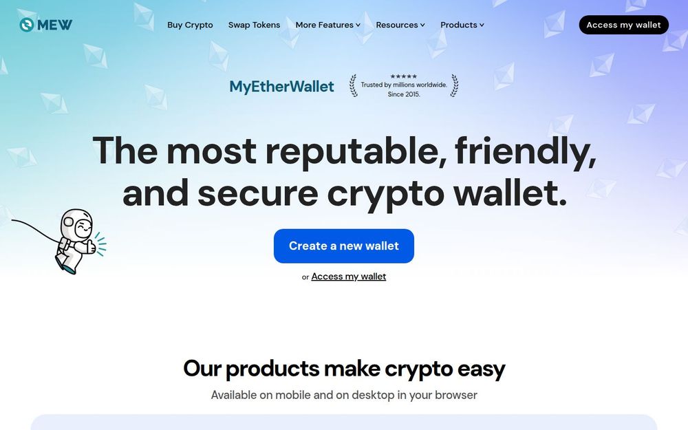 MyEtherWallet (often abbreviated as MEW) is a user-focused, non-custodial wallet and web3 platform built around Ethereum and compatible networks. Founded in 2015, MEW provides tools for securely storing, sending, receiving, staking, and trading ETH and ERC-20 tokens. It is designed both for newcomers who want a straightforward way into crypto and for experienced users who need multi-chain access, hardware wallet integration, and advanced DeFi utilities.