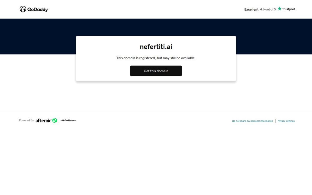 Nefertiti.ai is presented online as a registered domain name with a simple landing page indicating that the domain is registered but “may still be available.” The page appears to function as a domain parking or broker listing rather than an active product site. There is no substantive company information, product offering, or content beyond the registration status and an invitation to pursue acquisition through the registrar or broker. This sort of listing is common for short, brandable domain names, particularly those using the .ai extension which is often attractive to technology and artificial intelligence projects.