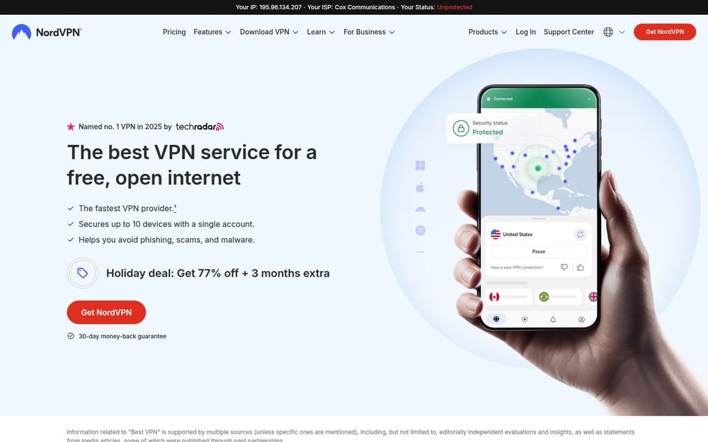 NordVPN positions itself as more than a simple privacy tunnel: it’s a performance-oriented VPN combined with layered threat protection, identity monitoring, and broad device coverage. That combination makes it appealing for users who want fast, reliable encrypted access plus proactive defenses and identity safeguards in a single subscription.