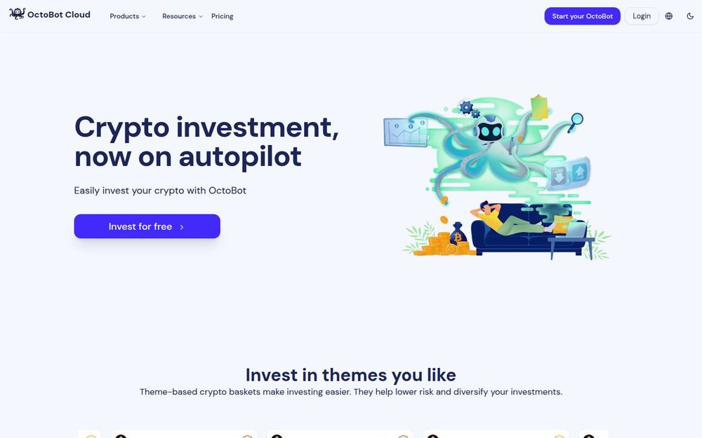 OctoBot is a cloud-based platform designed to make crypto investing and automated trading accessible to both beginners and experienced traders. It bundles pre-built strategies, thematic baskets, and automation tools into a single service so investors can allocate funds, monitor performance, and let algorithms manage execution across supported exchanges. OctoBot emphasizes transparency and community-driven development — the project is open source and supported by active channels on Discord and Telegram. The product is offered with tiered subscription plans including a free plan that lets users explore many strategies and test with simulated funds.