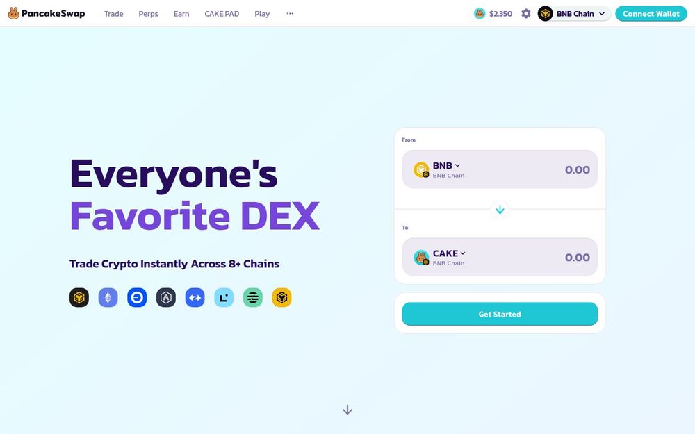PancakeSwap is a prominent decentralized exchange and DeFi ecosystem built to provide accessible on-chain trading, liquidity, and yield-generating products. It emphasizes a simple user experience, low transaction costs, and multi-chain connectivity — advertising support for swaps and bridges across eight or more chains. The platform centers around its native governance and utility token, CAKE, and exposes a suite of products designed for traders, liquidity providers, stakers, and builders.