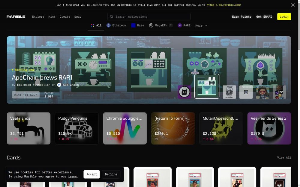 Community Rewards & Token Incentives: The platform integrates rewards programs and the $RARI token to incentivize engagement, liquidity provision, and creator activity across supported chains.