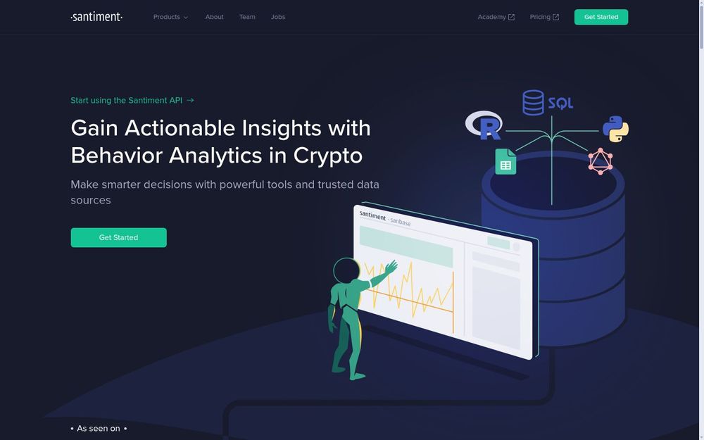 Santiment is a crypto data and behavioral analytics platform designed to help market participants make smarter, data-driven decisions. Founded in 2016, the service aggregates multiple data domains — on-chain, social, financial, and development metrics — and presents them through interactive charts, screeners, watchlists, and alerts. Santiment positions itself as an all-in-one intelligence platform for hedge fund managers, retail traders, crypto project teams, and NFT creators, enabling both exploratory research and operational workflows such as automated alerts or API-driven data ingestion.