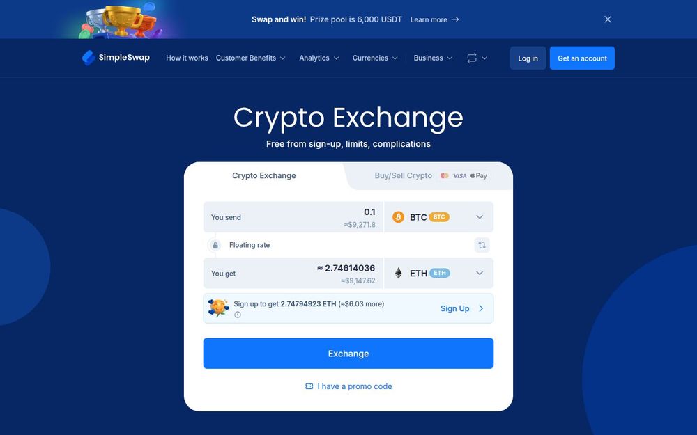 SimpleSwap is a web-based cryptocurrency exchange focused on simplicity, privacy, and accessibility. It positions itself as a non-custodial swapping service that lets users exchange crypto assets without mandatory registration or custody of funds. Designed for both newcomers and experienced traders who value convenience, the platform supports a broad catalog of tokens and offers fiat-to-crypto services, loyalty rewards, and promotional events.