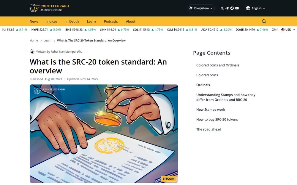 SRC-20 is a token standard associated with Bitcoin Stamps that brings a new method for minting tokens on the Bitcoin blockchain. Building on the lineage of colored coins, Ordinals and BRC-20, SRC-20 and the Stamps protocol focus on immutable, unprunable on-chain storage by embedding data into UTXOs. This approach recasts parts of Bitcoin from a pure store of value into a programmable medium for tokenized assets while raising debate about the network’s long-term purpose.