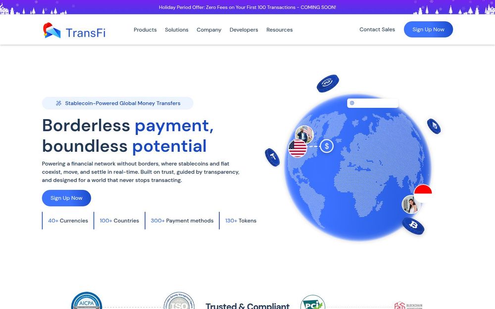 Global Wallet & Token Listing: A multi-currency wallet with 40+ fiat currencies and dozens of crypto assets, plus token listing services to connect tokens to TransFi’s global on/off-ramp and payment rails.