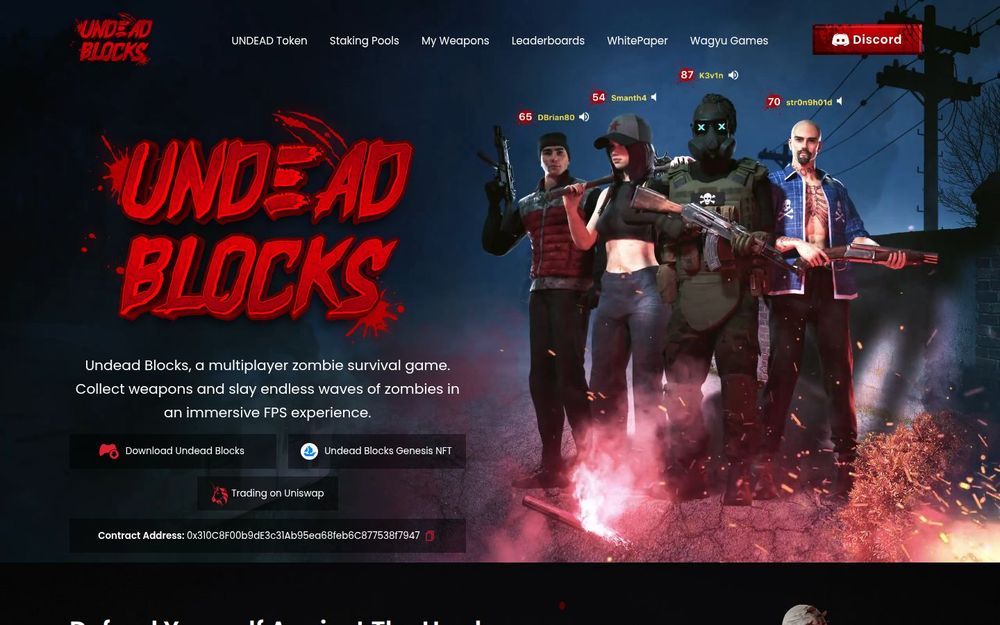 Undead Blocks is a crypto-enabled multiplayer first-person shooter that blends classic zombie survival gameplay with blockchain mechanics. Designed and developed by Wagyu Games, the title focuses on cooperative wave-based combat, collectible weapon NFTs, and a play-to-earn ecosystem where players earn ZBUX and upgradeable weapon assets. The project positions itself as a high-quality, console-style FPS experience with controller support, competitive tournaments, and both solo and squad-based modes.